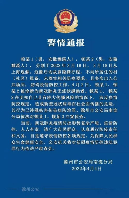 拘役或管制;情节严重者 ,处三年以上十年以下有期徒刑。总结:北京警方通报的案例涵盖隐瞒密接史、违反隔离规定 、隐瞒行程及非法行医等行为,均对疫情防控造成严重威胁。公安机关依据《传染病防治法》《刑法》及政府紧急命令,对相关人员立案调查 ,强调个人需严格遵守防疫规定,否则将承担行政或刑事责任。